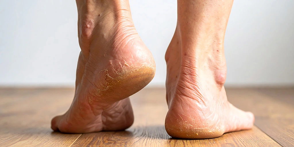 • Deep cracks that bleed or cause sharp pain, making it difficult to walk or stand.